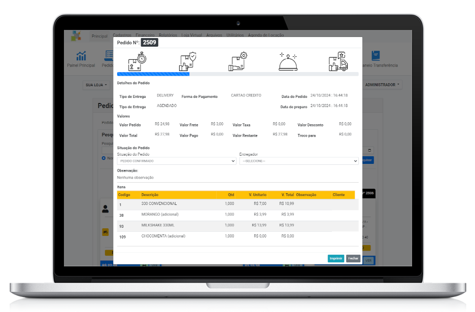 A gestão dos seus pedidos será feita pelo nosso painel administrativo contendo cadastro de produtos, gestão financeira e pedidos, interação com seu cliente do inicio ao fim do processo de compra e entrega. Integrado ao ERP ISASOFT voce podera realizar a venda diretamente no PDV de sua loja fisica e emitir o cupom fiscal para seu cliente, sendo assim voce consegue centralizar e gerenciar suas operações de venda em um único lugar.